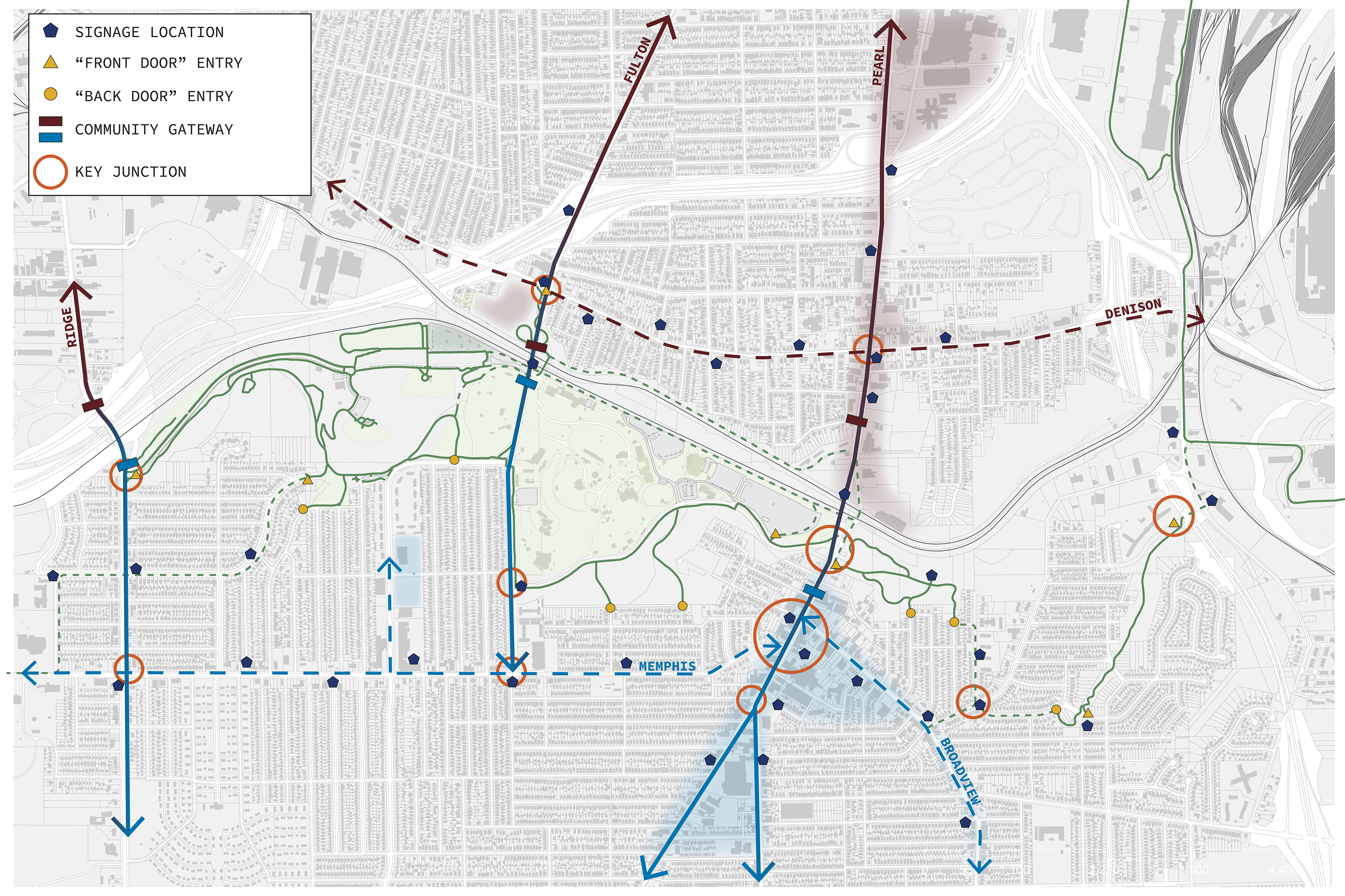 I focused on creating "catalogs" of design strategies that could aim to address these 3 issues using interactive artwork, differing scales of signage, personalized and unique trailheads, and more. Using these, the parks and surrounding neighborhoods can communicate more clearly and encourage active (and safe) interaction within the park system.