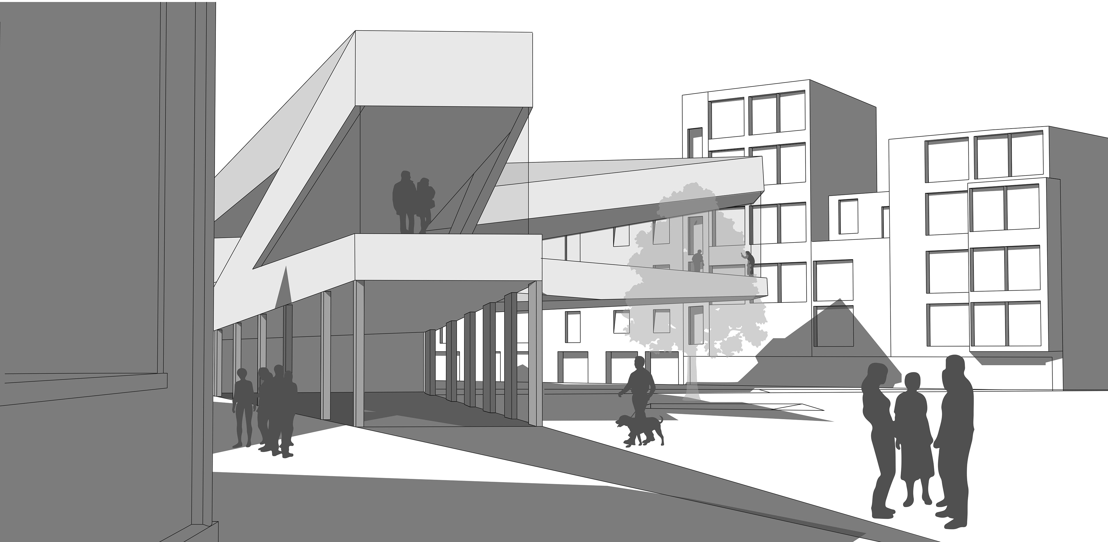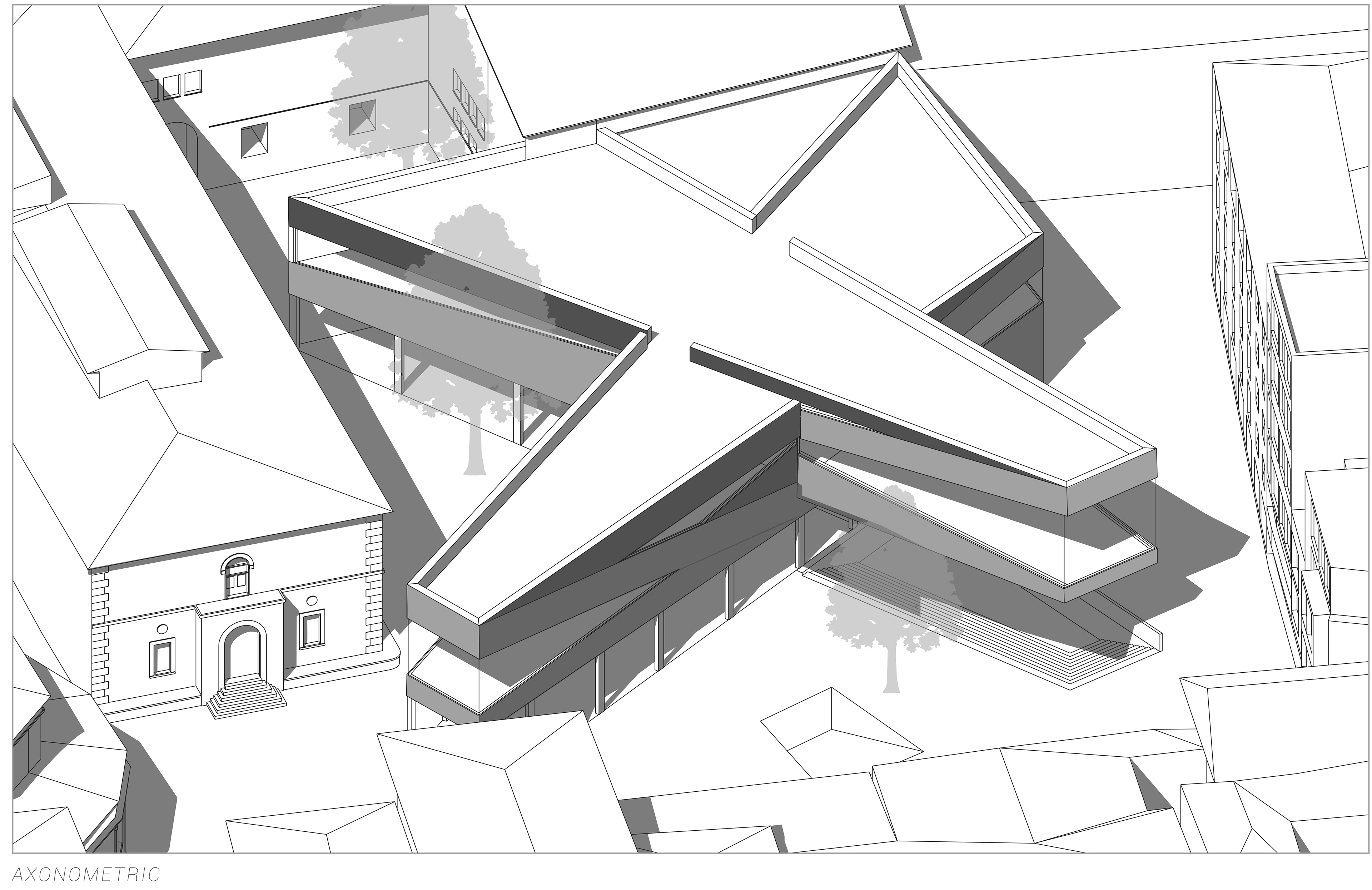 The form of the addition "points" at the Rotunda and Michelucci building while anchoring itself to the University building. It seeks to educate the community on Brunelleschi's importance, promote student voices, and restore the historical significance and respect to the site.